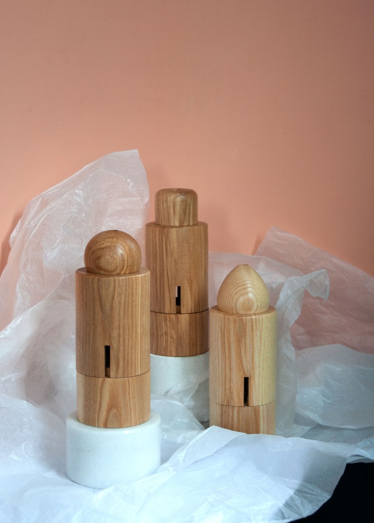 Aus FSC-zertifiziertem Eschenholz aus Sachsen, aus einem Stück Vollholz gedrechselt und gefräst, anschließend farblos geölt und per Hand poliert.