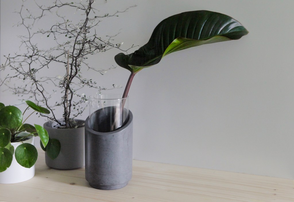 Bei Viisto verbinden sich Glas und kühler Beton ganz im Sinne der klassischen Designtradition. Viisto spielt dabei mit seinen beiden Elementen, dem herausnehmbaren Glaszylinder und dem abgeschrägten Betonfuß, und den unterschiedlichen Ansichten aus denen sie betrachtet werden kann. Mal leichter, mal schwerer aber immer einzigartig.